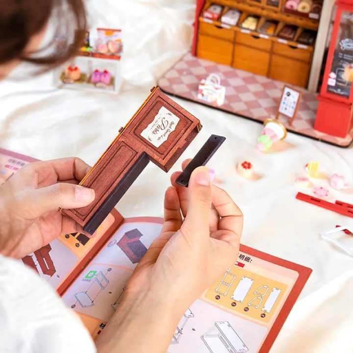 La maquette boutique pâtisserie contient 242 pièces à assembler, ce qui vous permet de construire une petite échoppe pleine de gâteaux miniatures qui donnent presque l’impression de préparer un coup en douce derrière le comptoir.