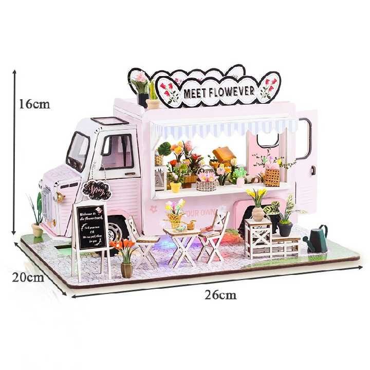 La Maquette camion fleuriste ambulant fait naître un petit commerce de plantes à installer sur une étagère, comme un rêve d’enfance rangé entre deux romans qui n’ont jamais eu de fleurs à offrir.