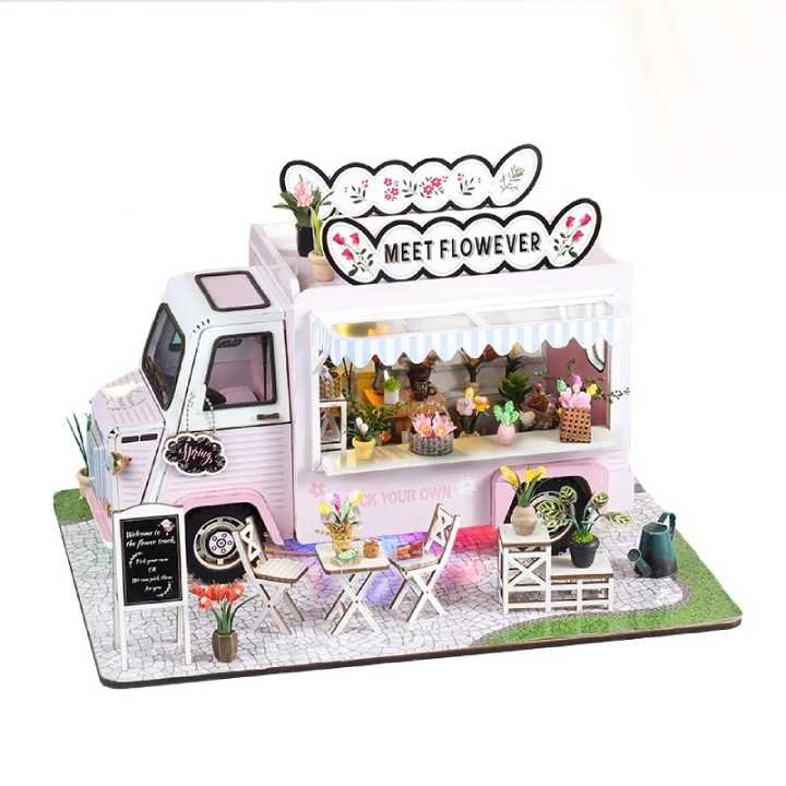 Ce petit camion rose distribue des bouquets comme s’il lançait du bonheur en vrac, et ses détails donnent l’impression que les fleurs attendent juste qu’on leur parle.