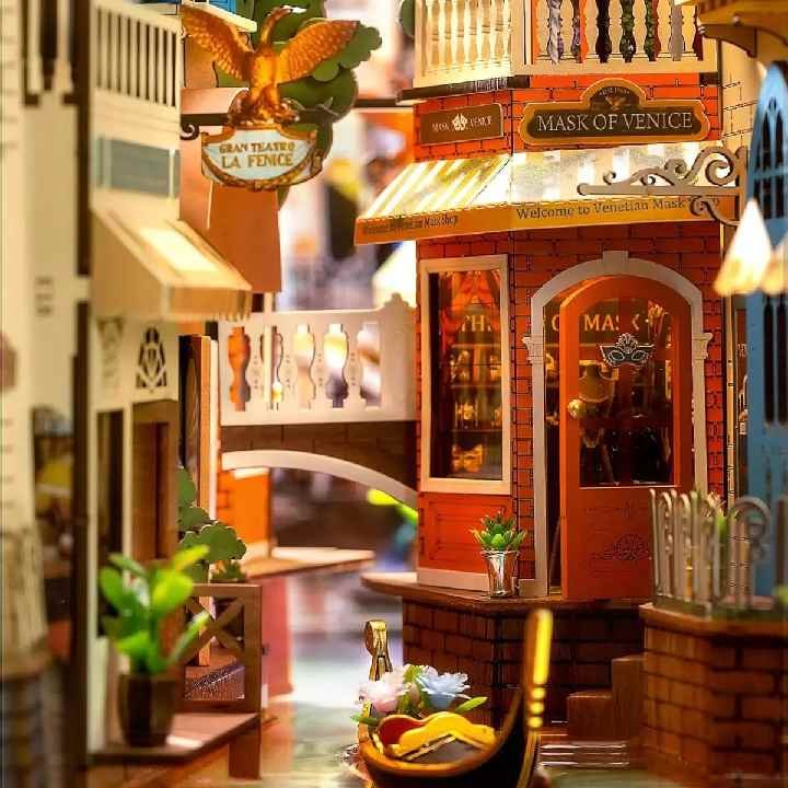 Une gondole, un pont, un balcon et un petit théâtre caché… tout est là pour créer une ville de poche qui n’a pas besoin d’eau qui sent bizarre.