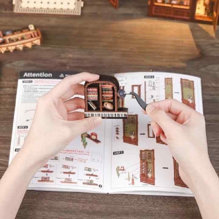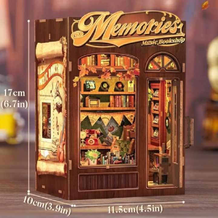 Une fois montée, la maquette librairie musicale devient un objet décoratif vivant, éclairé et animé, parfait pour attirer le regard sur une étagère ou un bureau.