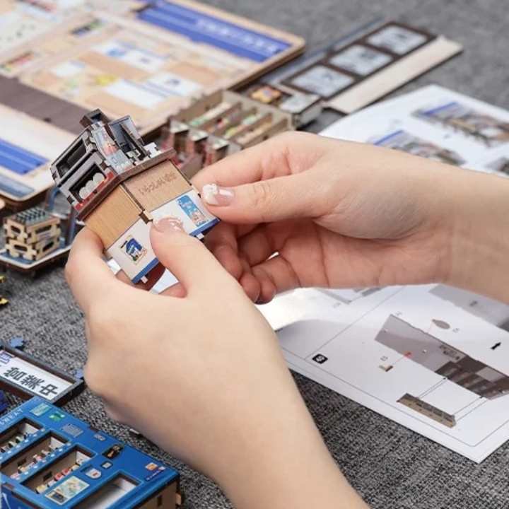 Une couverture anti-poussière est incluse, idéale pour garder la maquette supérette japonaise propre une fois terminée et exposée, sans que les rayons en miniature se salissent.