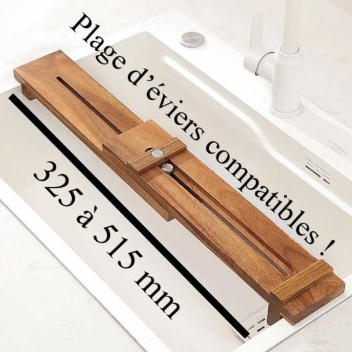 Le bois d’acacia apporte résistance et durabilité, même en utilisation avec l’eau. Le support reste stable grâce aux pieds antidérapants qui empêchent les glissements sur la surface de travail.