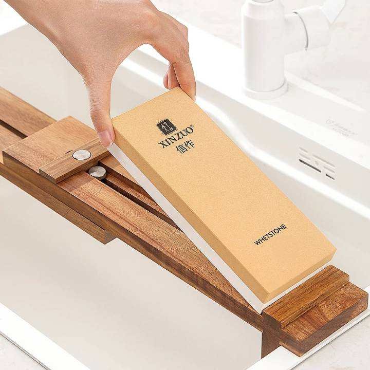 Ce Support pierre à aiguiser en bois offre un maintien fiable, sans avoir besoin de tenir la pierre à la main. Le bois apporte aussi un style naturel qui s’intègre bien dans un atelier ou une cuisine.